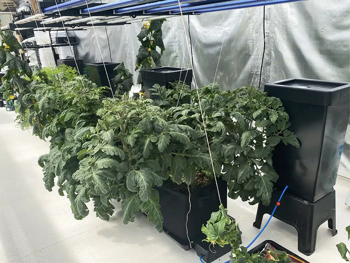 Above: AutoPot Tray2Grow systems with reservoirs elevated to induced gravity pressure – negating the need for pumps