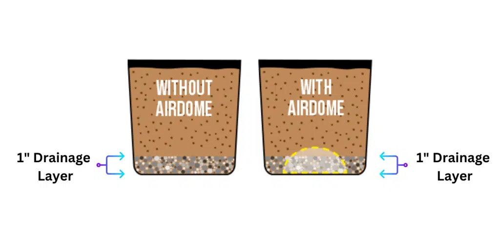 It’s never a bad idea to add extra oxygen into your root zone, but you’ll notice a more dramatic benefit if you are using a heavier substrate than our recommended mix, which is a 50/50 blend. With a 50/50 blend, you have a light, aerated substrate blend with pockets of air leading to ideal conditions for your plants in a bottom feeding system like AutoPot. With heavier substrate blends like a 70/30 or 80/20, you have less oxygen retention capacity because there are less ‘pockets of air’ in the blend so utilizing supplemental oxygen pumped into the root zone via an AirDome will lead to increased plant performance and yields.