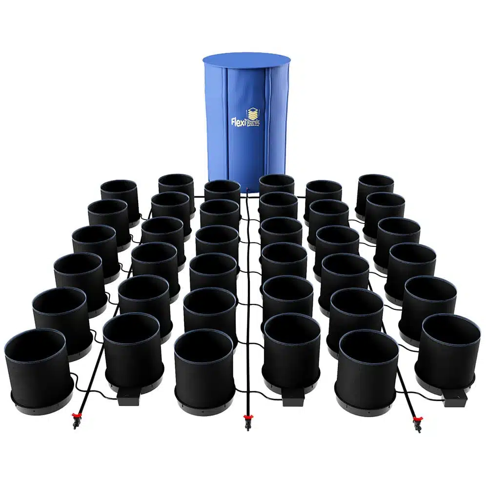The 36 Pot XXL System is easily extended so many pots can be linked to a single reservoir. The pots & trays can be easily moved at will, if the plants grow too large they can be spaced further apart with ease. Once set up and a reservoir is filled with water & mineral liquid feed this extremely versatile system will completely take care of all your plants needs.
