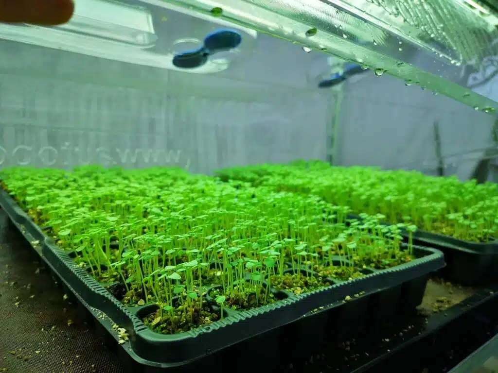 Propagation consists of eighty, three-shelved Danish Trollies covering 150 sq metres. Each trolley accommodates three easy2Propagate units. That’s a total of 240 easy2Propagate units in all. Each easy2Propagate holds 3-4 seed trays – around 300 cells per unit in total.
